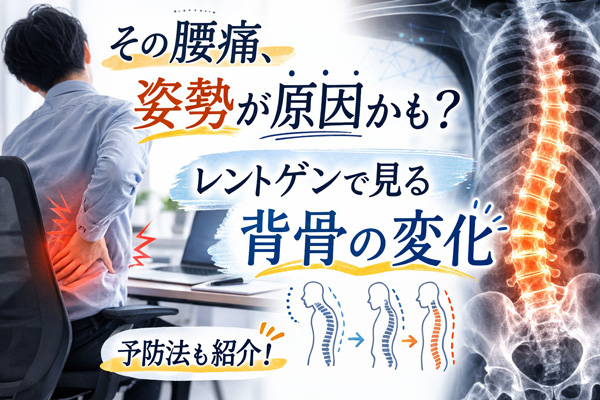「長時間座っていると腰が痛い」「朝起きたときに腰が重い」と感じることはありませんか。現代ではデスクワークやスマートフォンの使用時間が増え、姿勢の乱れによる腰痛が増えているといわれています。今回は、腰痛と姿勢の関係や、レントゲン検査で分かる背骨の変化、そして日常生活でできる予防・腰痛改善法についてご紹介します。