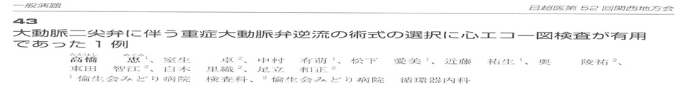 演題:「大動脈二尖弁に伴う重症大動脈弁逆流の術式の選択に心エコー図検査が有用であった1例」